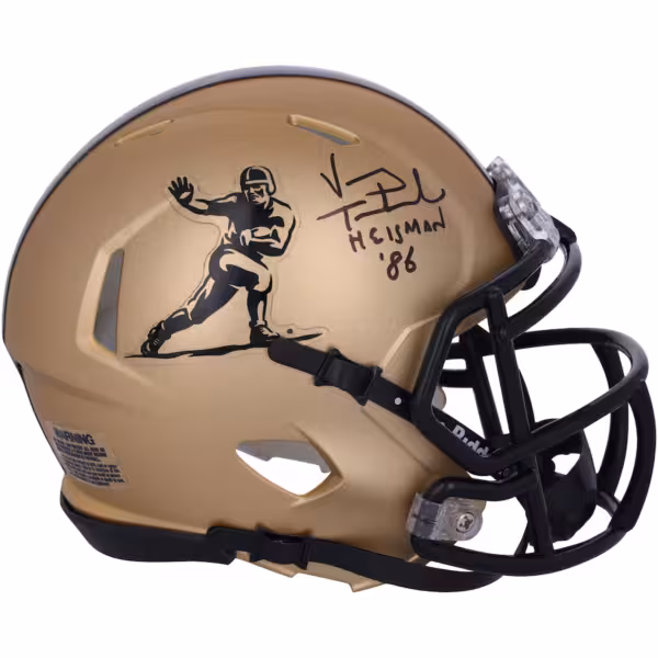 Vinny Testaverde Miami Hurricanes Autographed Riddell Gold Heisman Mini Helmet with “Heisman 86” Inscription