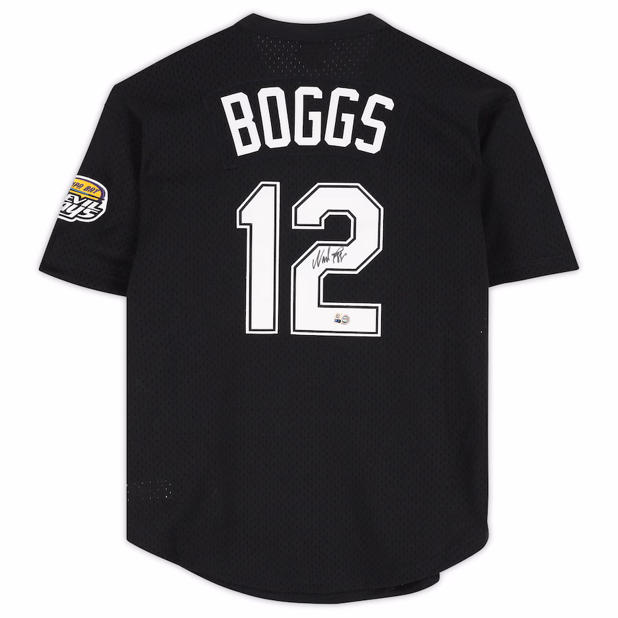 Pay homage to the impact that Wade Boggs had on the Tampa Bay Rays by adding this autographed Black Mitchell & Ness Batting Practice Pullover Authentic Jersey to your collection. Featuring a hand-signed signature from the eight-time Silver Slugger Award-winner, this jersey is a must-have for any die-hard fan of Wade Boggs or serious MLB collector.